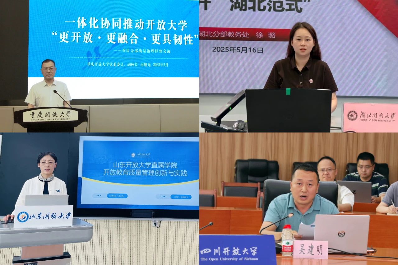 在分部工作交流環節,重慶分部黨委委員、副校長南旭光圍繞“推動體系重構、深化教學改革、建立閉環機制”分享了重慶分部的質量治理經驗;湖北分部教務處副處長徐璐介紹了從遠程聽評課入手提升開放教育質量的“湖北范式”;山東分部直屬學院院長張琳琳介紹了其所在學院層面開放教育質量管理的創新做法與實踐效果;四川分部達州開放大學黨委專職副書記吳建明分享了市級開放大學緊盯核心環節、協同發力創先爭優的經驗。