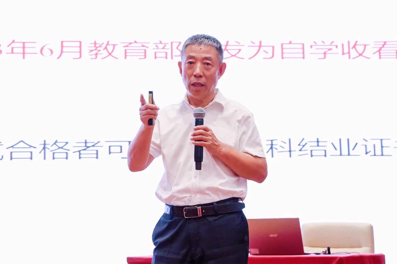 劉臣以《奮進中的國家開放大學(國家老年大學)》為題,系統梳理了學校四十余年的艱苦創業史,全面分析了學校教學業務的探索歷程,深刻揭示了技術發展對學校事業的助推和影響。他勉勵大家,要繼續發揚前輩的奮斗精神,不斷提高政治素養,豐富專業知識,提升崗位技能,為國家開放大學(國家老年大學)建設貢獻力量。