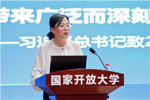 范賢睿以《同心共謀數字化大學建設》為題,以習近平總書記關于教育強國的重要論述為主線,聚焦現實背景、階段成果、關鍵問題、路徑選擇四個方面,對學校改革發展總體情況和數字化大學建設情況進行了系統介紹,描繪了建設一所鏈接世界的數字化大學的美好藍圖。她強調,新時代新征程呼喚新擔當新作為,數字化是推動開放大學高質量發展關鍵的“驅動輪”和“催化劑”,作為一名國開青年,要持續增強數字化思維,提升數字化能力,在以數字化為引領撬動開放教育整體變革的國開數字化戰略行動中貢獻青春和力量。
