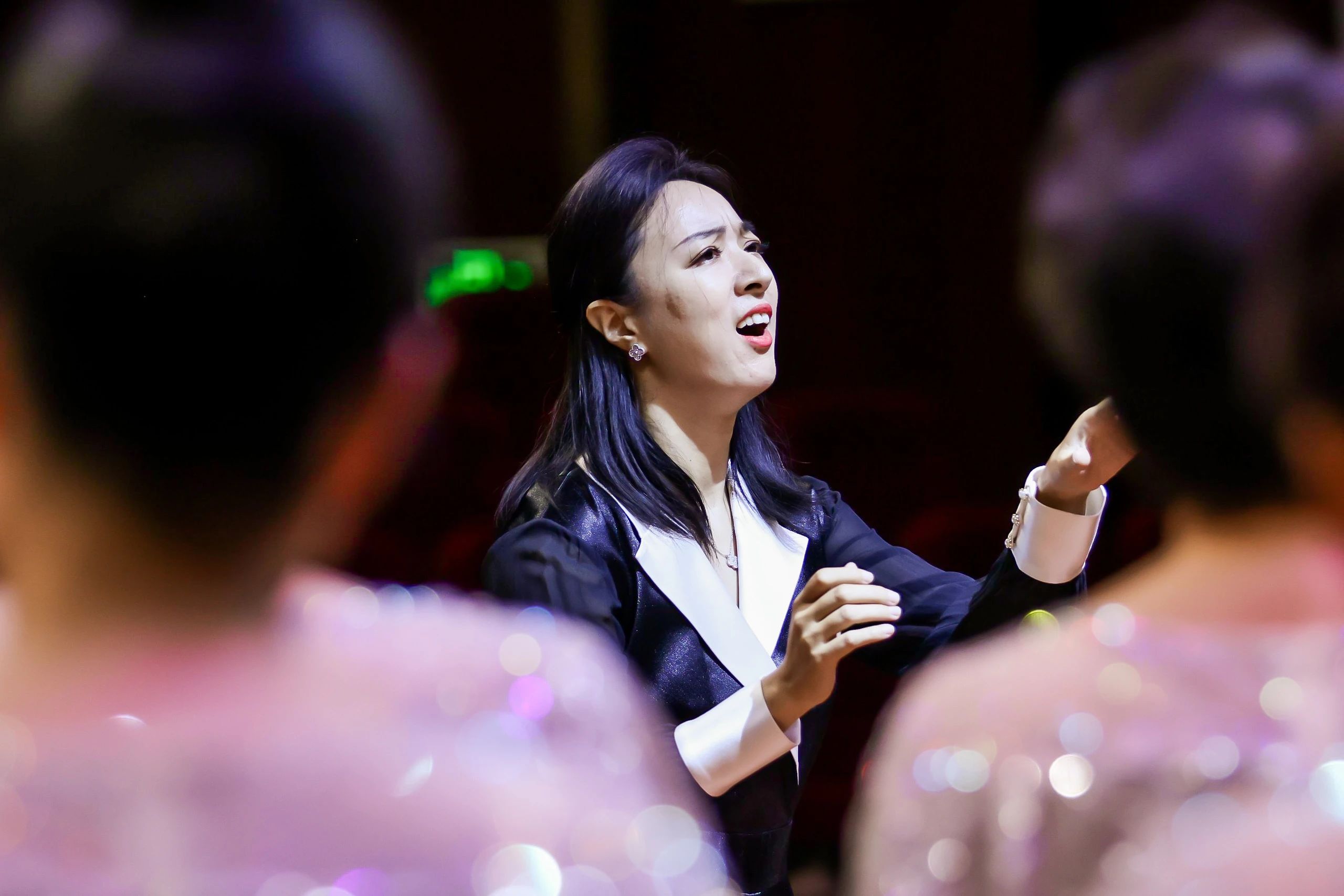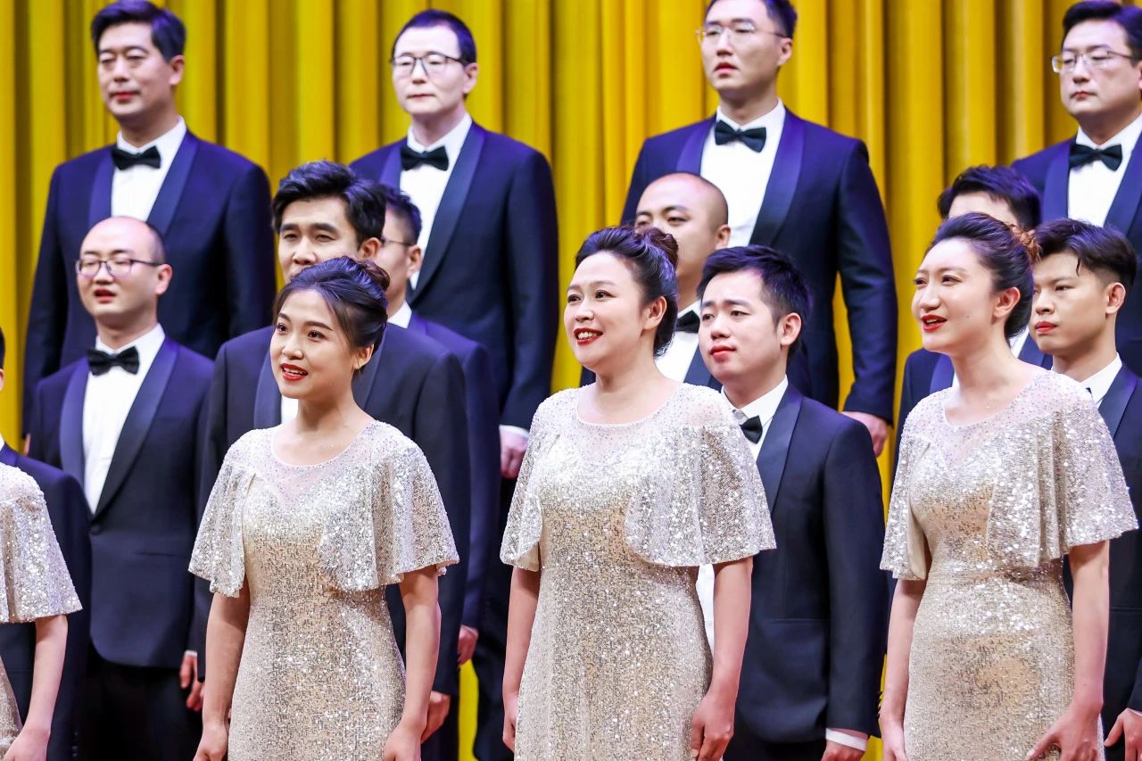 國家開放大學演唱曲目為片區必唱曲目——《黃河大合唱》和自選曲目——《天耀中華》。比賽現場,隊員們精神振奮,歌聲激昂,在磅礴大氣的唱腔和細膩婉轉的聲線交融下,表達了對祖國的拳拳熱愛與衷心祝福,贏得了現場評委的高度認可與觀眾的熱烈掌聲。
