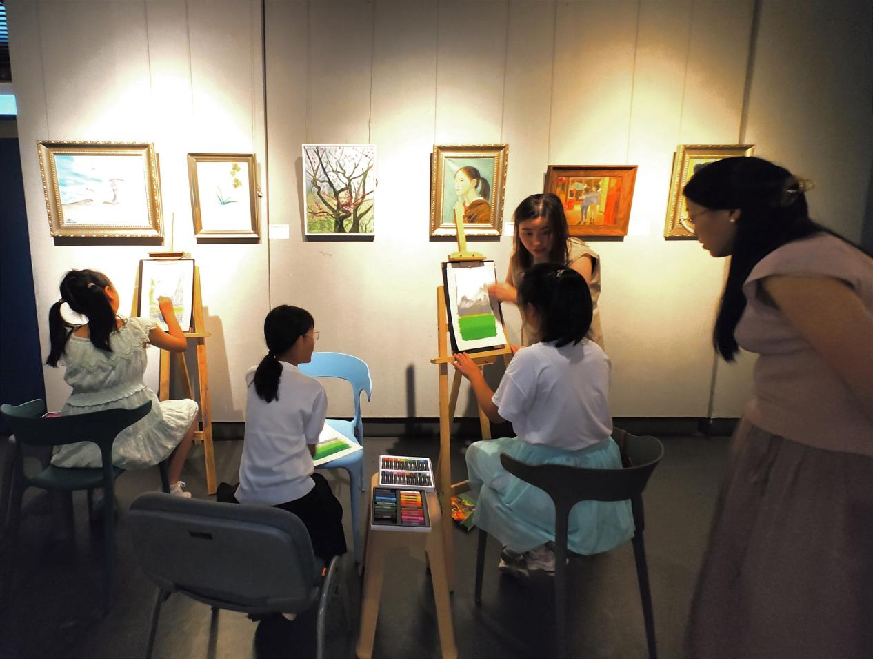 不少前來參觀學習的少年兒童還現場臨摹各自喜歡的油畫作品。
