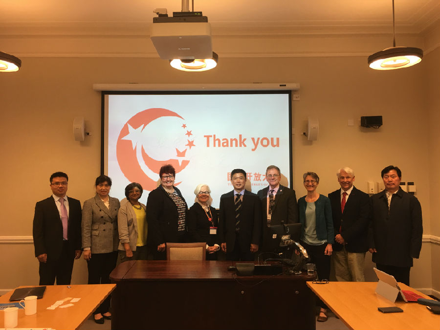 6月5日,代表團到訪倫敦大學進行交流訪問,倫敦大學副校長Mary Stiasny教授、遠程教育中心主任Linda Amrane-Cooper博士、國際合作事務負責人Mike Winter先生及遠程教育中心研究員Alan Tait教授等參加了接待活動。林宇副校長和Mike Winter先生各自介紹了學校的基本情況和國際業務,雙方交流了對遠程教育發展趨勢的看法和辦學經驗。英方認為兩校在遠程教育方面有一定的相似性,有很大的合作潛力,表示今年將接收中國國家開放大學體系內的中英獎學金項目訪問學者,在倫敦大學進行學習研究,并參與相關學術會議等交流活動。雙方還探討了教師培訓(線上線下相結合、國內與國外相結合)、在線課程引進與開發及遠程教育研究等領域的合作,并將在此次會談的基礎上進一步溝通具體合作方向,擴大兩校合作。