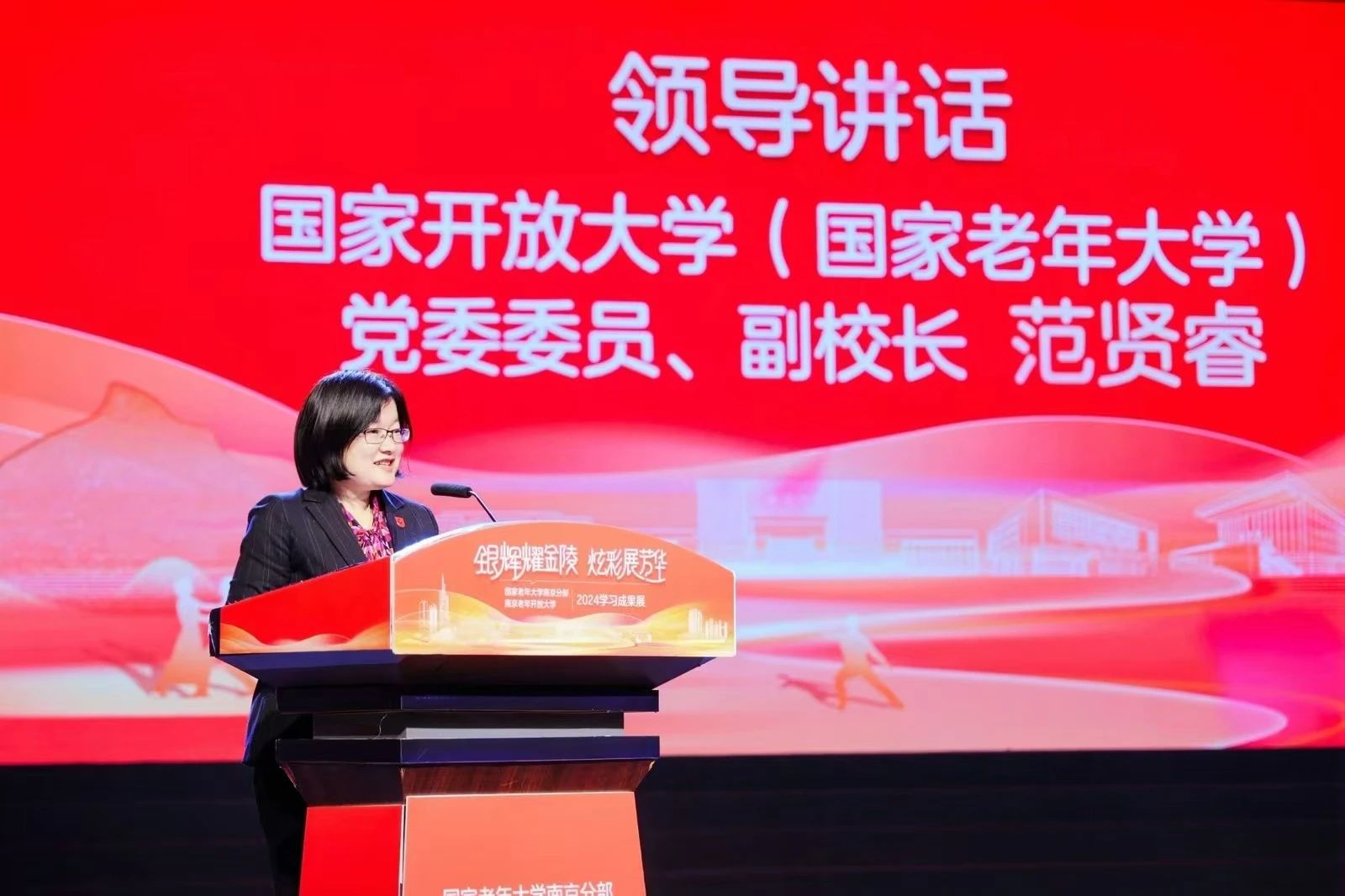 為深入貫徹落實黨的二十屆三中全會和2024年全國教育大會精神,助力全民終身學(xué)習(xí)的學(xué)習(xí)型社會、學(xué)習(xí)型大國建設(shè),12月19日,國家老年大學(xué)南京分部在南京廣電集團舉行以“銀齡耀金陵,炫彩展芳華”為主題的2024年教育教學(xué)成果展。國家開放大學(xué)(國家老年大學(xué))黨委委員、副校長范賢睿受邀參加展演活動,并調(diào)研老年教育工作。