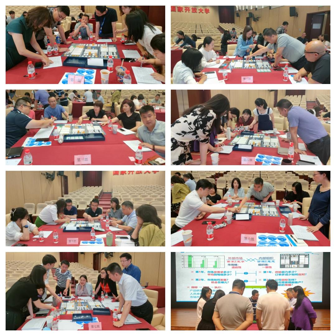 全體學(xué)員分為七個(gè)小組,每個(gè)小組作為一個(gè)企業(yè)經(jīng)營(yíng)團(tuán)隊(duì),采用職能分工模式,圍繞市場(chǎng)競(jìng)爭(zhēng)所面臨的內(nèi)外部環(huán)境和各項(xiàng)約束條件,對(duì)企業(yè)經(jīng)營(yíng)管理的各個(gè)方面制定戰(zhàn)略決策并付諸執(zhí)行。參訓(xùn)人員清晰地了解了每項(xiàng)決策對(duì)企業(yè)經(jīng)營(yíng)運(yùn)作結(jié)果的影響,從而借助推演學(xué)習(xí)企業(yè)經(jīng)營(yíng)的本質(zhì)邏輯,建立全面經(jīng)營(yíng)管理思維,提升系統(tǒng)思考和戰(zhàn)略管理能力。