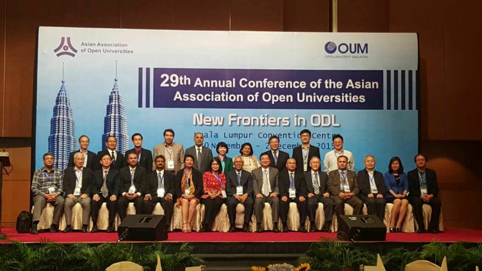 2015年11月30日至12月2日,第29屆年會在馬來西亞吉隆坡召開。本屆年會由馬來西亞開放大學承辦,主題為“開放與遠程學習的新前沿”。國家開放大學代表團一行5人參加了此次會議。國際合作與交流處副處長陳海山參加了第30屆AAOU執委會和第29屆AAOU全委會。由國家開放大學、香港公開大學、印尼特布卡大學、韓國國立開放大學、日本開放大學5所開放大學指定成員承擔的MOOC工作小組匯報了2015年度工作進度。在平行會議上,國家開放大學參會代表崔乃鵬、陳思銘、陶欣欣、劉述進行了論文宣讀和研究成果分享。
