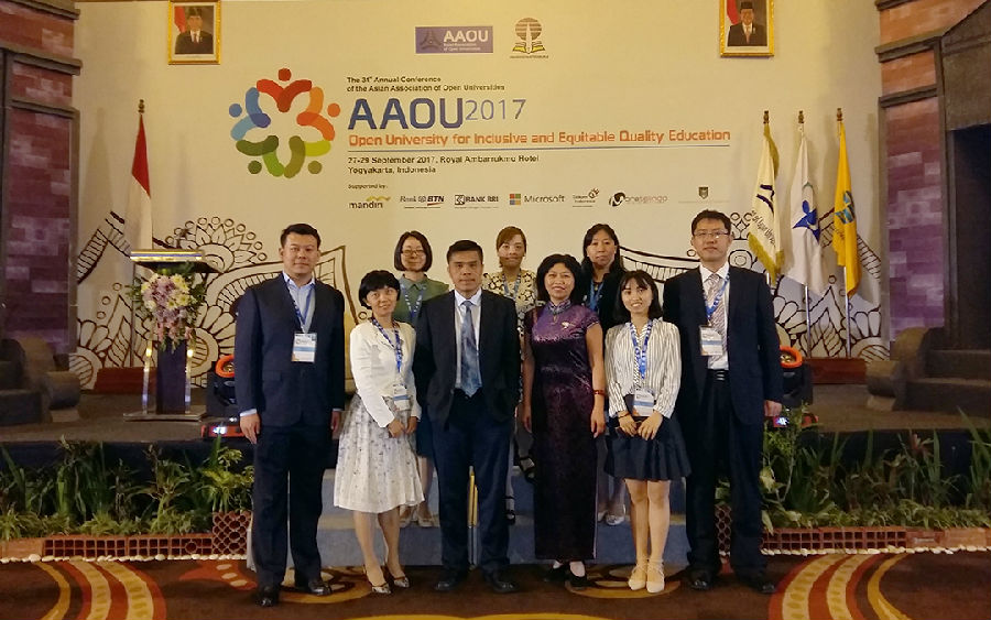 2017年9月27日至29日,第31屆年會在印度尼西亞日惹召開,國家開放大學副校長李林曙率代表團一行9人出席會議。此次年會由印度尼西亞特布卡大學承辦,主題為“致力于全納和公平優質教育的開放大學”。近300名來自亞洲各國的代表出席會議。國家開放大學孫鴻飛的論文《為農民工提供公平教育機會和靈活學習服務》、殷雙緒的論文《中日兩國開放大學外部質量評價比較研究》、楊敏的論文《國家開放大學少數民族學生的教育公平與效率》、李志香的論文《遠程教育移動學習模式研究》、孫志娟的論文《中國產業工人遠程教育模式研究》、江小青的論文《導學教師現狀的研究》分別在平行會議上進行了宣講和交互。與會期間,李林曙副校長還參加了第32屆AAOU執委會和第31屆AAOU全委會。