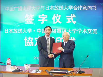 2009年,中央電大作為中國代表參加了由日本文部省、千葉市和日本開放大學(xué)聯(lián)合主辦的世界開放大學(xué)校長論壇;同年5月,中央電大與日本開放大學(xué)共同簽署了遠(yuǎn)程教育合作協(xié)議,簽約儀式通過雙向視頻系統(tǒng)向全國電大進行了播出。自協(xié)議簽署以來,中日雙方在學(xué)術(shù)研究、項目開發(fā)、人員交流、教學(xué)資源共享、教材互換等方面開展了全面、廣泛的合作。另外,中央電大、日本開放大學(xué)以及韓國國立開放大學(xué)還于2009年啟動了中日韓三方遠(yuǎn)程教育論壇。