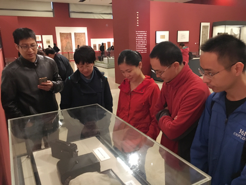在活動的第二部分,全體老師參觀了包括“戰爭史詩”“軍民情誼”“艱難歲月”“長征記錄”“豐碑永存”“長征畫卷”六大部分的《紀念紅軍長征勝利80周年大型館藏文物展》。該展覽圍繞“長征精神”所體現的不怕犧牲、嚴守紀律、緊密團結、艱苦奮斗、患難與共、堅守理想和信念等內容,用戰斗的武器、布告、木板標語、漫畫、地圖、歌曲詩篇、學習課本、烈士手稿、紅軍家信等多種類型的文物等,向大家多角度全方位地展現了紅軍指戰員長征中的戰斗、生活、學習和互助的場景,加深了大家對于長征的認識和理解。