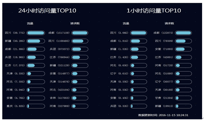 國家開放大學作為一所新型大學,提升教學質量的重中之重是推進網絡教學。全國各地區推進網絡教學的力度究竟有多大呢?信息化部動態可視化數據顯示出各省級、各地市級實時訪問學習網情況,具體如下圖所示: