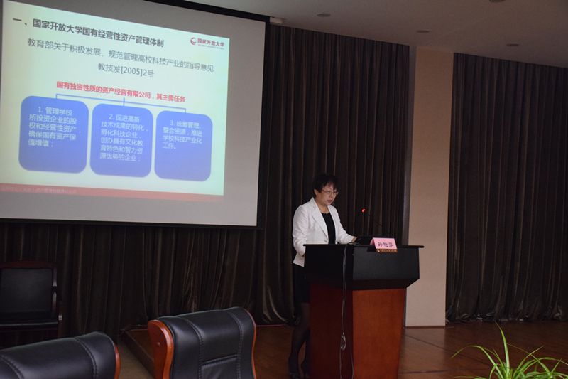 首先,資產管理公司總經理孫艷萍做了“加強國資監管,助力國開前行”的專題報告,介紹了學校經營性國有資產管理體制和校辦企業經營現狀、解讀了國有資產管理新趨勢、通報了學校國資監管的重要舉措、提出了校辦企業規范管理的新要求。孫艷萍總經理強調,各校辦企業與學校緊密聯系、密不可分,希望各財務人員主動轉型,服務企業業務發展,促進企業做優做強,幫助企業實現盈利能力和服務學校事業發展能力雙提升。