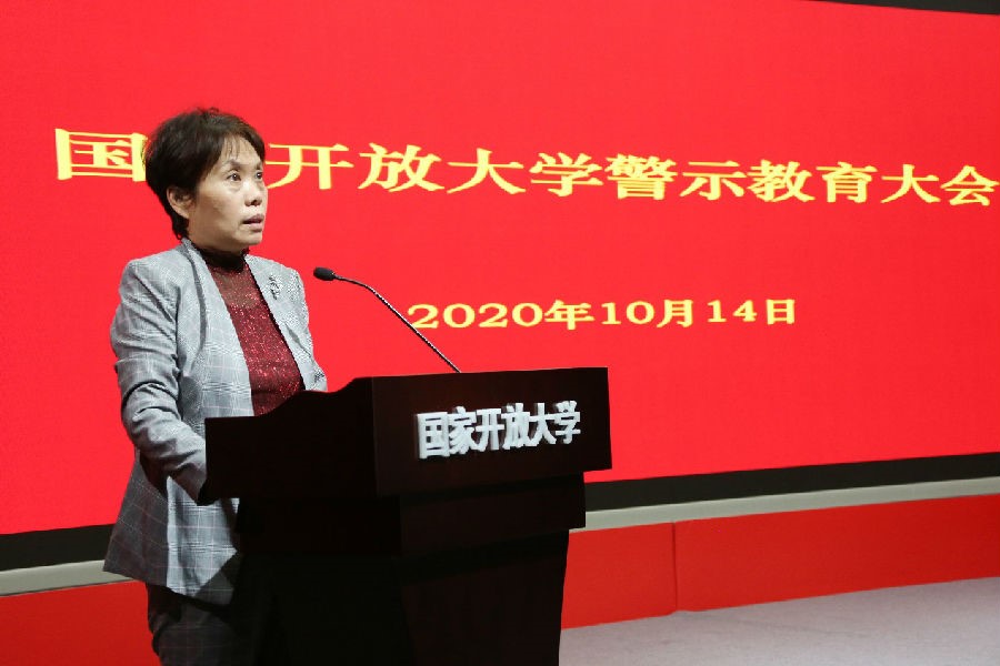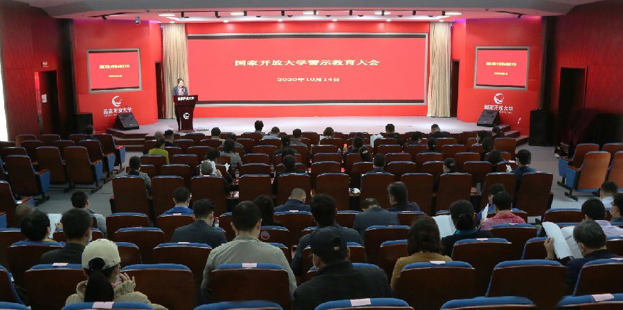 10月14日,國家開放大學召開2020年警示教育大會,進一步嚴明黨的紀律,持之以恒落實中央八項規定精神,糾正“四風”,堅決反對浪費特別是餐飲浪費行為,提高領導干部黨性意識。學校黨委副書記、紀委書記劉向虹出席會議。會議由學校紀委副書記、紀檢監察部部長李睿卿主持。學校各黨(總)支部書記、中層干部、校辦企業班子成員及紀檢監察部全體工作人員共計81人參加會議。