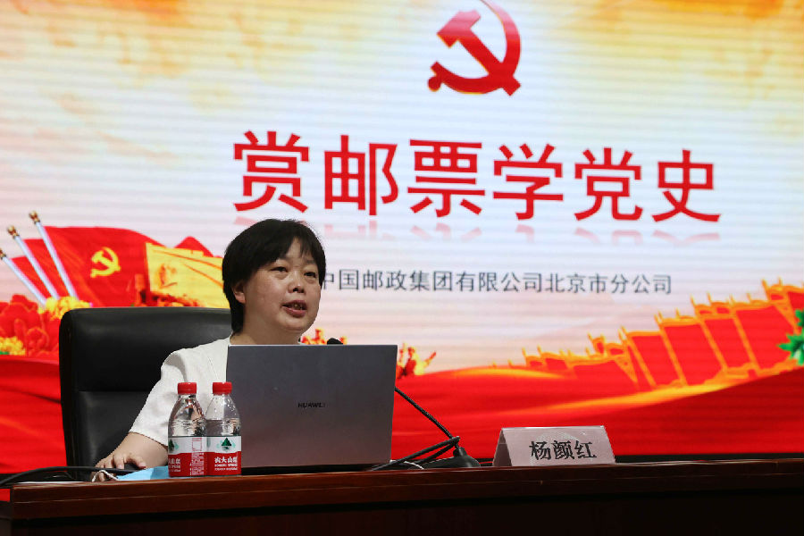 楊顏紅老師是北京市郵政教育培訓中心黨建教研組學科帶頭人,在本次講座中,她以郵票為載體,講述了中國共產黨從1921年到2021年期間所發生的標志性歷史事件、召開的具有重要意義的會議和涌現的重要歷史人物,帶領黨員同志們在郵票方寸之間,深刻感悟中國共產黨始終不渝為人民的初心宗旨。